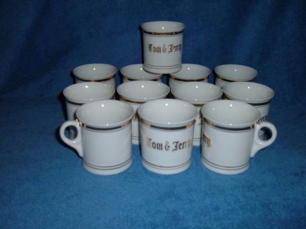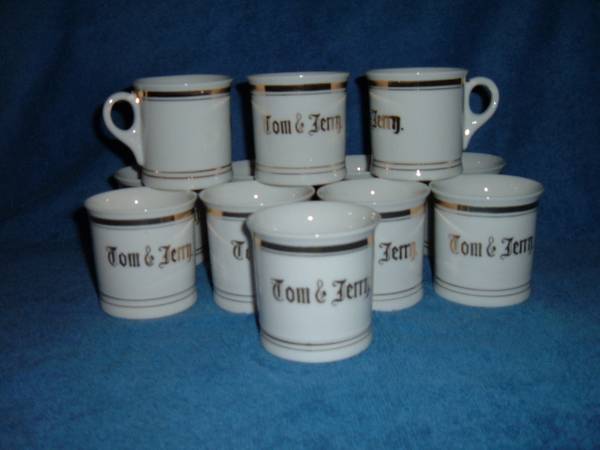 11 cups, TOM & JERRY Cup IMPERIAL CHINA CHRISTMAS COCKTAIL GO ON LINE FOR RECIPES BATTER: Eggs separated, cream of tartar, butter, powered sugar, nutmeg, cloves, cinnamon, vanilla. THE DRINK:...
