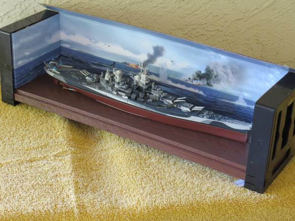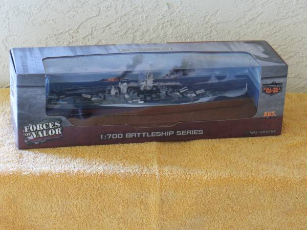 "Durably constructed with a die-cast metal hull, this 18-1/2-inch-long model replicates "Big Mo's" massive deck with the highest level of detail. There are three detailed rotating main turrets, each with three elevating cannons. The conning tower and adjacent superstructure are rendered in precisely scaled miniature with five rotating gun turrets port and starboard. The aft deck showcases two Curtiss SC Seahawk aircraft awaiting their next mission, while twin rudders and four detailed propellers are featured below."
