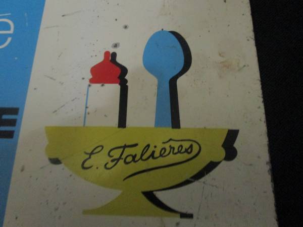 Nice Patina on this old metal sign. Real Rust; not that fake stuff that could be toxic! I believe it is for a service that provided baby foods with the bottle and spoon. This is a very cool and rare item that you do not see too much! Can be cleared over of displayed as is!