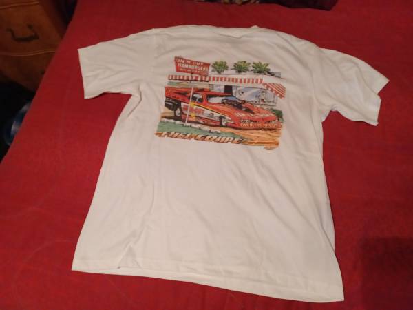 Shirt is of the racing team of the famous California restaurant.