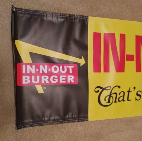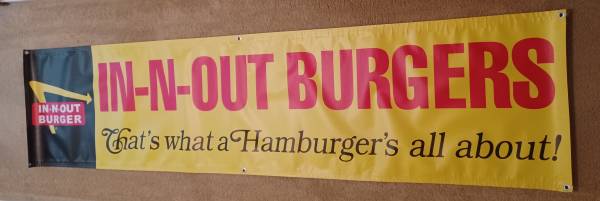 IN-N-OUT Burger Banner Very nice condition. Very small spot on back, hardly noticeable 84 inches by 21 inches Thanks for looking! in&out in out in and out innout