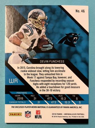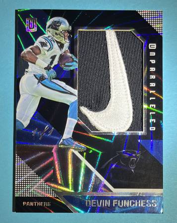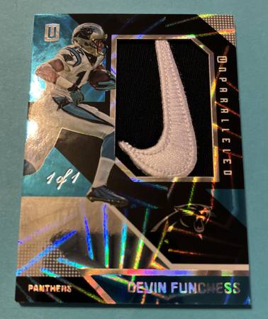 2016 Panini Unparalleled Nike Swoosh Logo Patch - Devin Funchess - #1/1 Carolina Panthers Football card One of one Nasty Patch $200