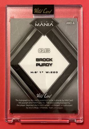 Brock Purdy auto football card 2023 Wild Card Auto Mania autographed #1/2 SF 49ers $250