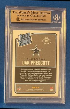 Dak Prescott rookie card - PRISTINE BGS 10 2016 Donruss Rated Rookie BGS 10 Pristine Dallas Cowboys $250