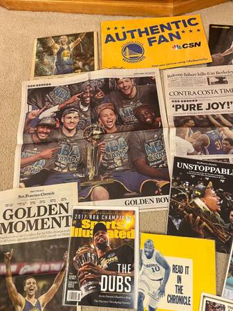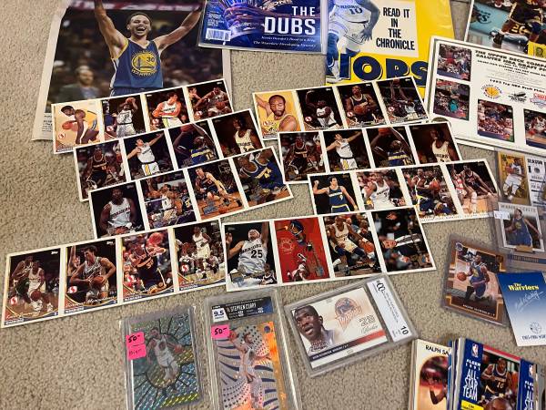 Stephen Curry. NBA World Champions. Basketball cards. Signed pics. Signed book by Chris Mullin. Newspaper memorabilia. Sports Illustrated.