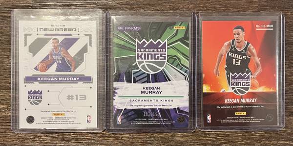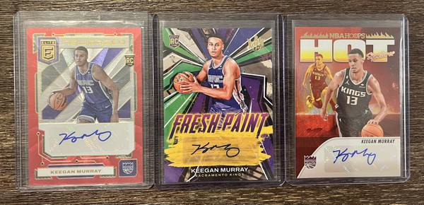 Keegan Murray auto basketball cards lot of 3 - Sacramento Kings Great condition. Two rookie autos. Two are numbered. $120 firm I have multiple Keegan auto lots. Please look at other listings.