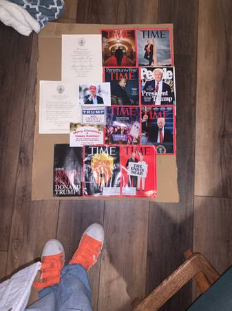 Also I have a very unique item, a home made collage of magazine covers, and stuff the Trump Campaign sent me during the 2016 election. It even has an invitation to the 45th presidential Inauguration from Trump and Pence. Guaranteed You will never find anything like this ever again. Its a great conversation piece, or take up some wall space in your man cave. ($40)