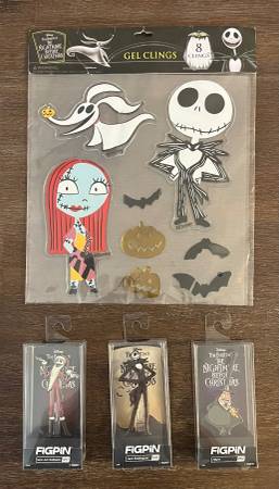 The Nightmare Before Christmas Figpins & Window Gel Clings All new in package. Never opened. Figpins include Jack Skellington, Santa Jack & the Mayor All for $70