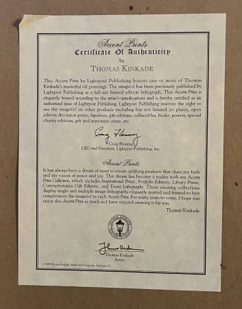 Thomas Kinkade Collector Cottages Exclusive Lifetime Portfolio w/ COA Measures 19 1/4”T x 9 3/4” $30