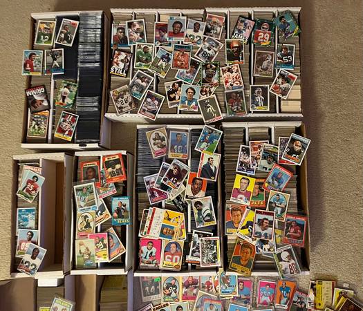 Vintage Football Card Collection About 15,000 cards Mostly commons Please see pics to get an idea of brand and years included in this lot $1250 for all