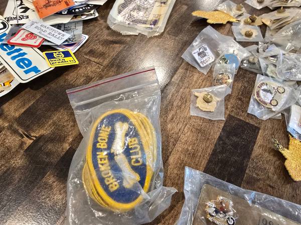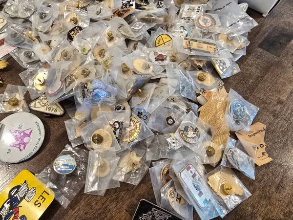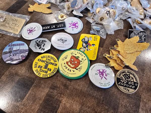 Assorted Vintage Motorcycle Club Pins / Stickers / Badges for $250/all. Not selling separately. Mostly 1980's Northern California pins. They appear to be different pins, but there might be a couple duplicates.