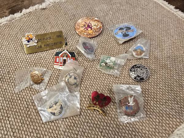 Assorted Vintage Motorcycle Club Pins for $90/all. Not selling separately. All but 2 are new unused.
