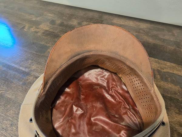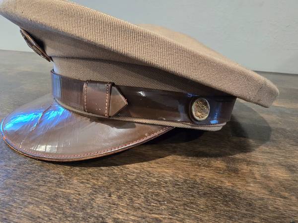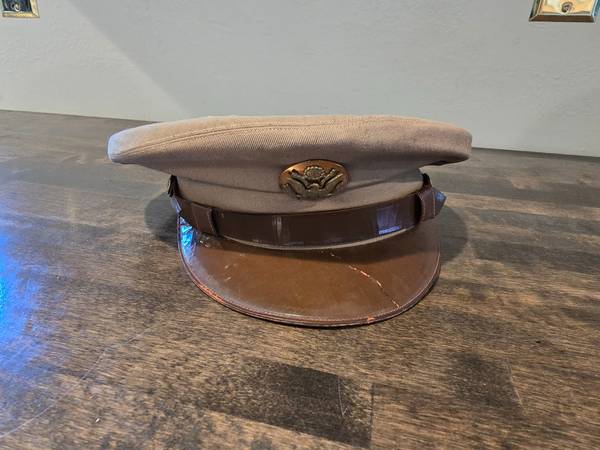 Vintage US Army WWII WW2 Enlisted Soldier Man Service Khaki Cap Hat Visor for $50. It has a split in the visor coating and a couple small holes above the emblem. Besides that, it's in good condition, in my opinion. Size 6 7/8.