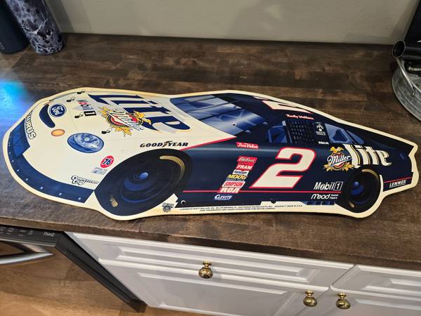 Vintage Nascar Rusty Wallace #2 Miller Lite Plastic Yard Car Sign 14x34 In for $25/firm. It has yellowing as pictured. *The price is firm, please no offers. *I'm located near the Post Office 161W...