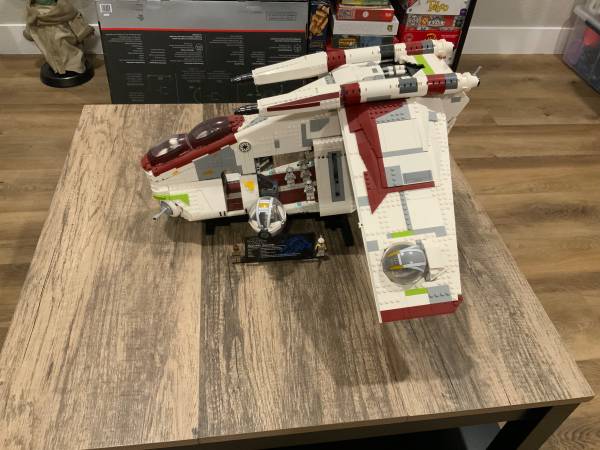 Star Wars Republic Gunship ultimate series 75309; Already put together (all pieces are there and included mini figurines too); Still have original box and all books included. Never played with; built by an adult and had for display only. Asking $400 with original box and booklets. Cash only, serious inquiries only; no checks, money order etc. don’t ask for Google code either. Will not ship or hold. Must be able to pick up in Folsom. Posting on Facebook Marketplace too.