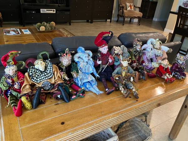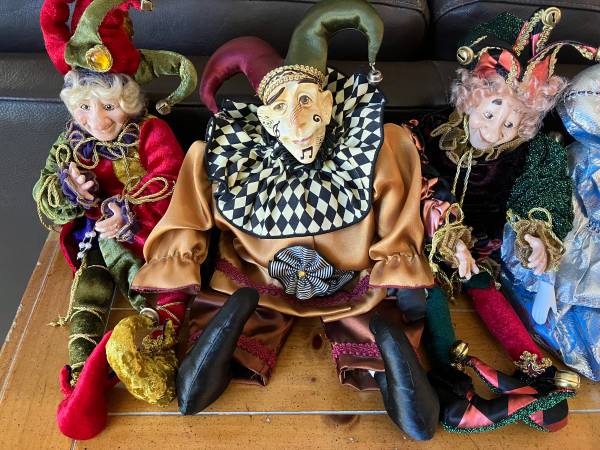 Total of 12 jesters, all different, in perfect condition, ready for Christmas display! Call or text any questions, . $35 for all 12, cash only.