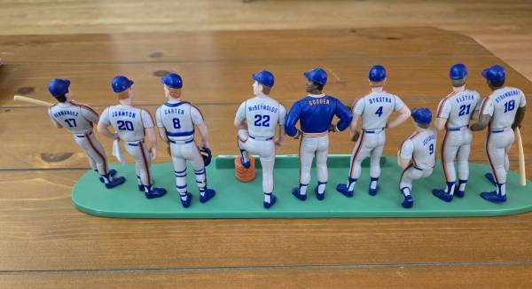 The product is a 1989 New York Mets team set. This set includes various figures of the team and the players from that season. Including Darryl Strawberry, Gary Carter, Dwight Gooden, Keith Hernandez, Lenny Dykstra. It is a must-have for fans of the team looking to decorate their home or man cave with memorabilia from the 1989 season. This set is perfect for collectors and fans who want to showcase their love for baseball in a nostalgic way.