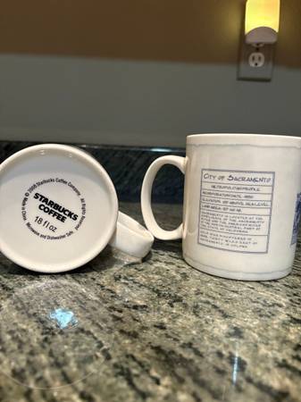 (2) Starbucks Sacramento discover gold 18 oz. coffee mugs-- Never Used--Sell for $15 Cash Only and you pick up. If interested please send phone number to talk and get details, thank you.