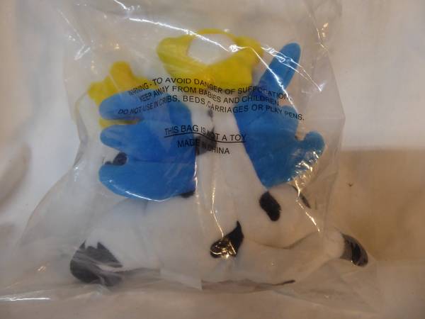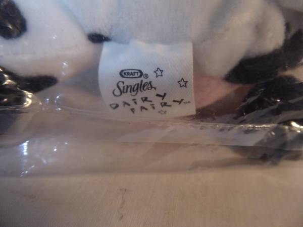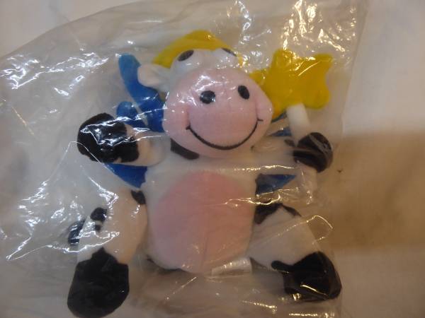 This is a new-in-bag "Dairy Fairy" Stuffed Cow with blue wings and yellow halo from Kraft Singles (cheese). 7" tall. $5. It is in Penryn. Call to see it/buy it.
