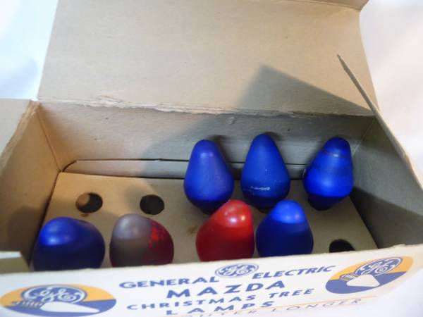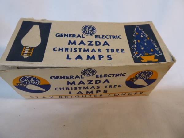 2. Box of GE Mazda Christmas Tree Lamps (bulbs). C 71/2 size. 7 bulbs. Appear some are used. Box measures 6" x 2 1/2" x 2 1/2". $10.