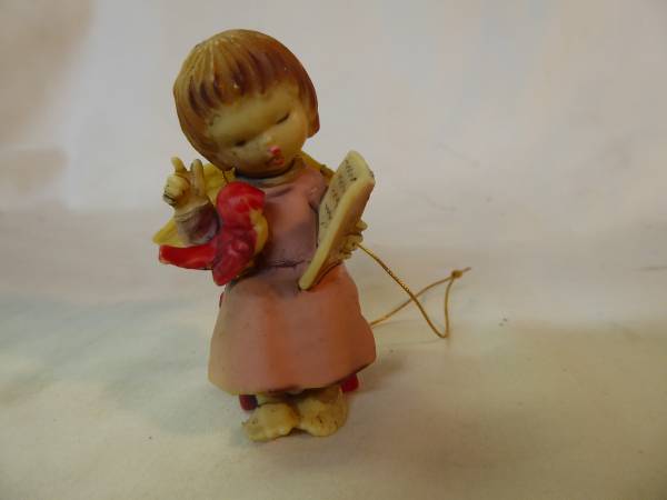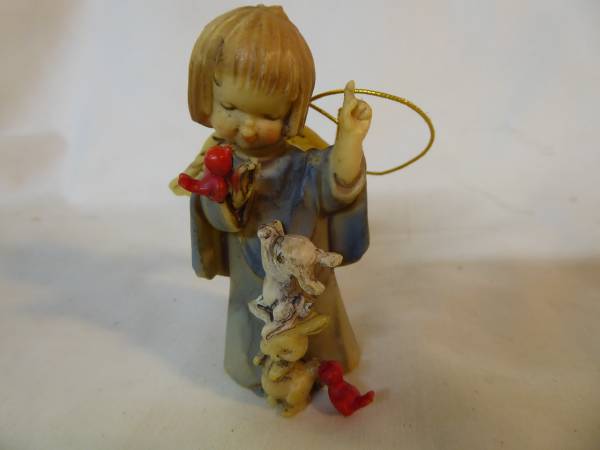 1. Set of 4 heavy, molded plastic angels made in Hong Kong. They are about 3" tall. $5 per set of 4.