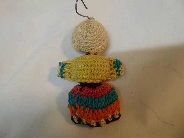 4. Vintage doll with crocheted clothes. 3" tall. $2.