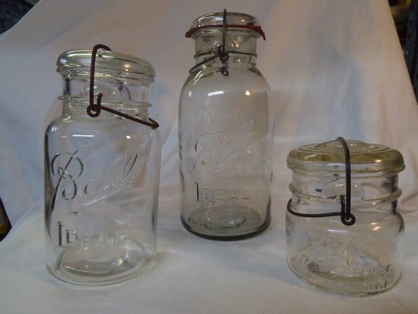 This is a collection of 3 Vintage Clear Glass Ball Canning Jars with Bale Handles/Lids. All 3 for $35.