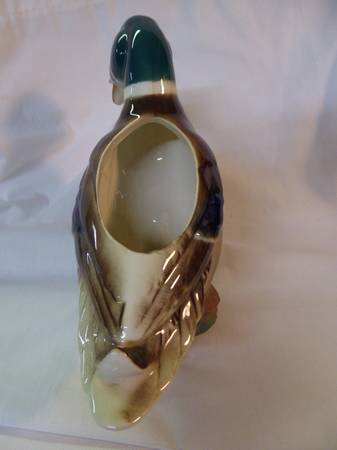 This is a vintage Royal Windsor Mallard Duck Planter. Still has the Royal Windsor tag on it. Royal Windsor is part of the Royal Copley brand. 9" long, 7" tall. Vivid colors. No damage to the duck. $12. It is in Penryn. Call show contact info