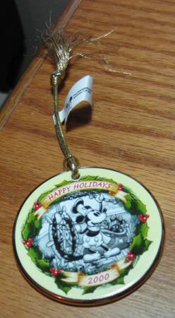 Disney Christmas Collectors Ornament 2000 Steamboat Willie Happy Holidays First in a series of five. With original price tag of $9.00. Like new.