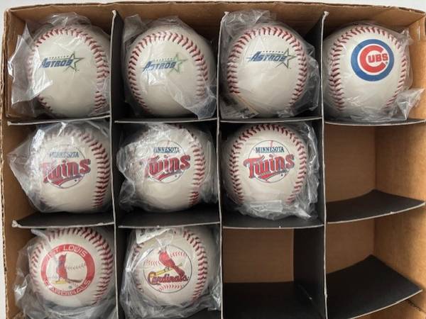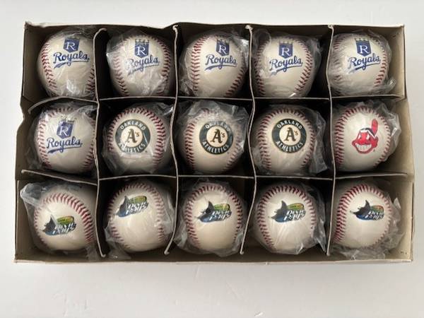 Brand new 1990s vintage American and National League replica baseballs. Pick your favorite teams or buy as a set. Each ball features team logos from that era and all are in brand new condition in their original wrapping. The asking price is $10 for each. Perfect for any baseball fan or collector. I currently have the following teams: Giants, Rockies, Marlins, Astros, Twins, Cardinals, Cubs, Red Sox, Orioles, Brewers, one National League and one American League ball, Phillies, Pirates, Mariners, White Sox, Diamondbacks, Blue Jays, Mets, Reds, Yankees, Rangers, Royals, A's Indians, Devil Rays, Angels, and Tigers, Mix and match. Pickup or meetup are both options.