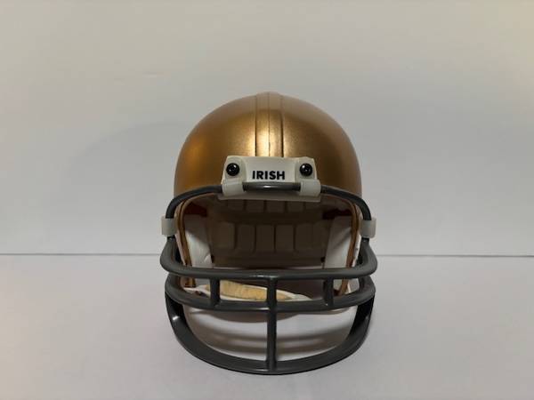 Showcase your team spirit with the Riddell NCAA Notre Dame Fighting Irish mini helmet. A must-have for any football memorabilia collector and Notre Dame fan. It's the perfect addition to your display, whether it's in your home, office, or fan cave. The helmet features the iconic colors of the Fighting Irish, capturing the essence of the team's vibrant history. Still in excellent condition. Asking price is $30. Pickup or meetup are both options.