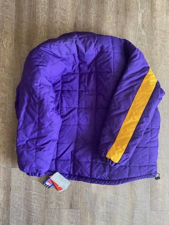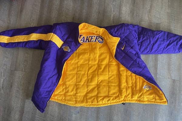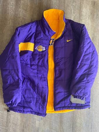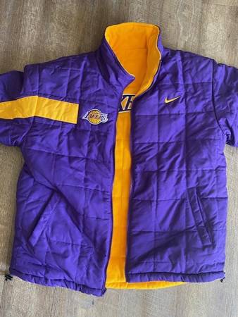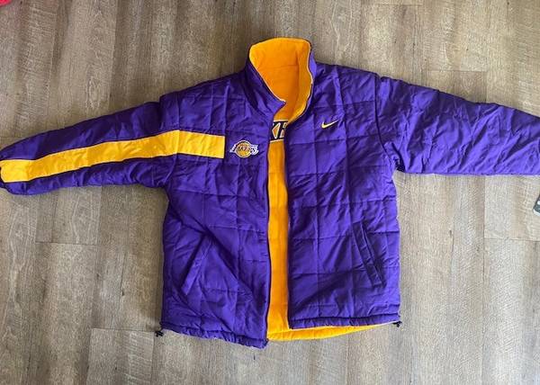 This Nike Los Angeles Lakers puffer jacket is brand new and in pristine condition. It's reversible so you can wear it on the yellow side or the purple side. It's a size medium and the asking price is $50. Perfect for any Lakers fan and makes for a great gift. Feel free to ask any further questions. Pickup or meetup are both options.