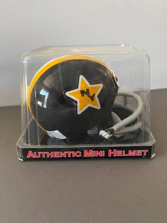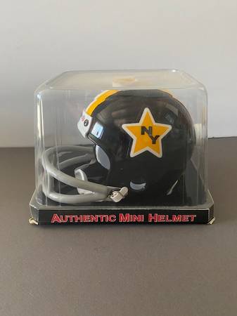 Showcase your team spirit with the Riddell WFL New York Stars mini helmet. A must-have for any football memorabilia collector and dates back to the days of the World Football League. It's the perfect addition to your display, whether it's in your home, office, or fan cave. The helmet features the iconic colors and logo of the New York Stars, capturing the essence of the team's vibrant history. Still in the original packaging and in new condition. Asking price is $40. Pickup or meetup are both options.