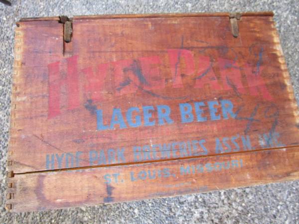 ANTIQUE ADVERTISING 1942 HYDE PARK BEER St. LOUISE, MISSOURI WOOD SHIPPING CRATE. Measurements: 16 1/2 inches long, 10 1/2 inches tall, and 12 1/2 inches deep Condition: Good / Very solid with the...