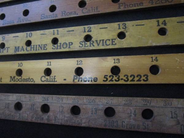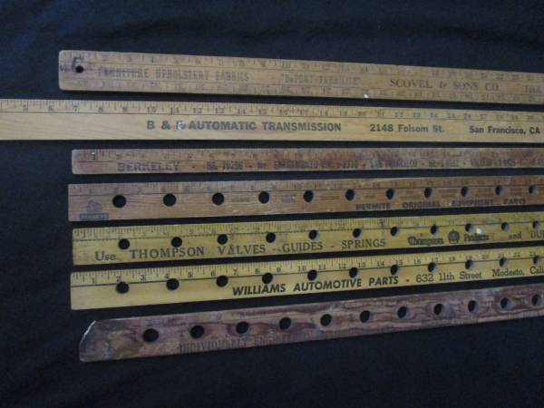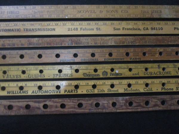 Automotive Related Businesses Yard Sticks and 48" Ruler / All with ties to Northern California. Most are from Closed Businesses