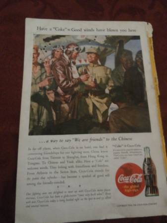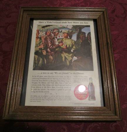 Ask for mailing options: Pay Pal member FRAMED NATIONAL GEOGRAPHIC AD DATED: DECEMBER 1943 SIZE 11/3/4 X 9 3/4Wide FRAMED AD: Chinese and American sharing COKE 1943 The Chinese were an ally of the...