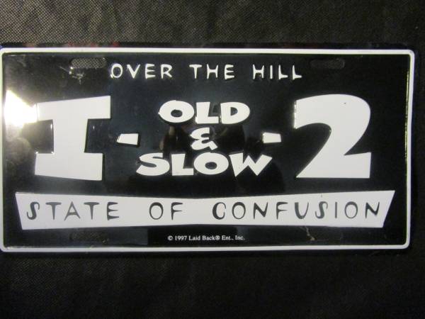 Novelty License Plate "I Old n Slow 2" Over the Hill - From 1970s Near Perfect Condition