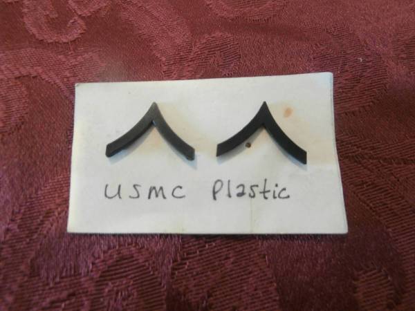 EACH SOLD SEPARATELY: Ask for mailing options: Pay Pal member 1. PIC'S # 1 / $5 PVT PLASTIC USMC LAPEL PINS 2. PIC'S # 2,3 / $7 LANCE CORPORAL: PLASTIC LAPEL PINS CASH ONLY I will meet you in front...