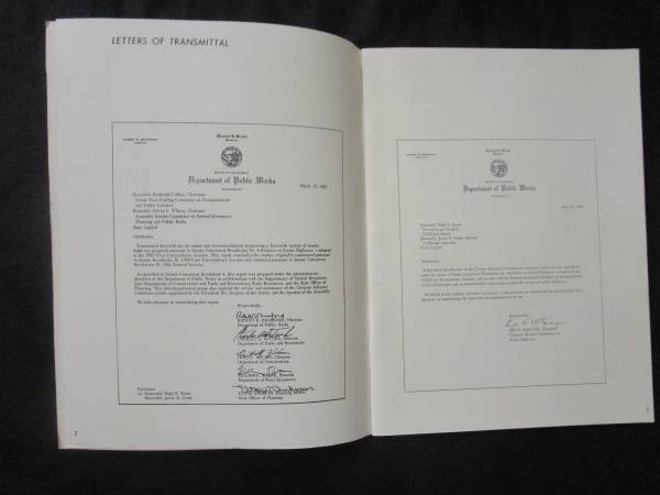 The report A Plan for Scenic Highways in California was published in 1963 by the California Department of Public Works and authored by the California Advisory Committee on Scenic Highways. The document, also referred to as A Preliminary Plan for Scenic Highways in California, served as the foundation for the state's official Scenic Highway Program, which was established by the legislature later that year through Senate Bill 1467.