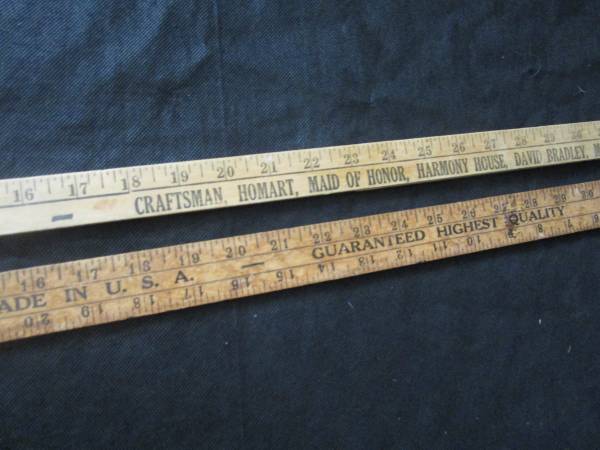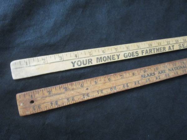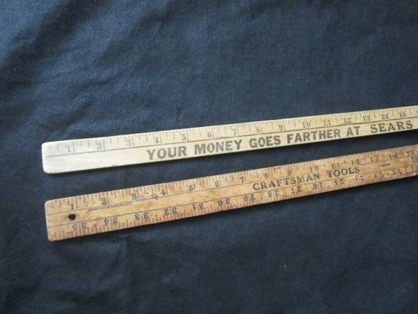 Two Very Nice Vintage Sears Items: 36" Yardstick and 48" Folding Stick / Both are solid hardwood with no breaks and have great patina and wear from use! Price is for both!