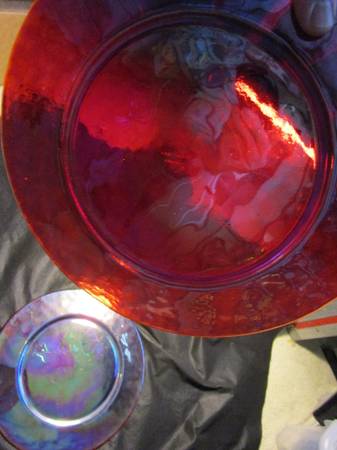 Two (2) Yalos Casa Murano Red Iridescence Charger Plates -...
