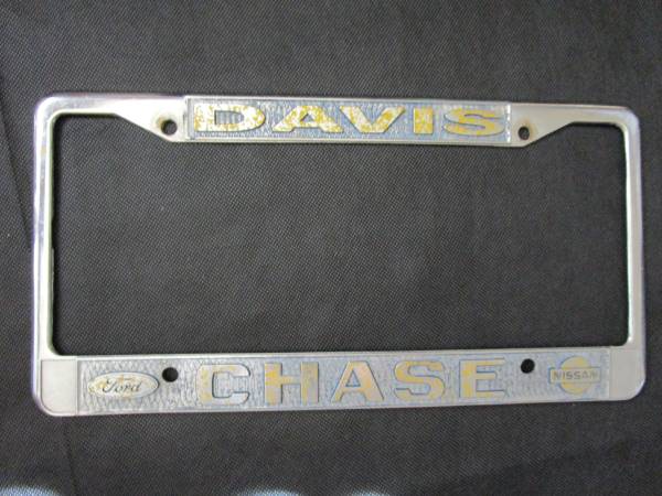 Vintage CHASE in Davis California Dealership License Plate Frame - Nice Rare items for the Ford and/or Nissan Collector Chase Ford and Nissan - Davis, California Dealership License Plate Frame /...