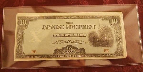 Japan Invasion Money WWII Philippine $10 Peso (Not Stamped) Excellent Condition +