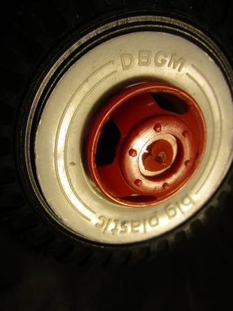 It has really stood the test of time and play. It has red vinyl sticker accents, black tires with "white walls" and red hub caps and a black steering wheel.
