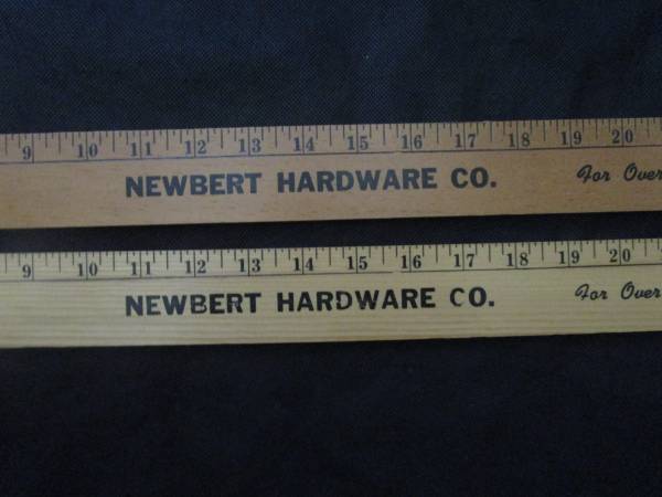 Newbert Hardware operated at the southeast corner of 17th and J streets, serving local contractors, farmers, and handymen. Celebrated for its knowledgeable staff and known as the place to get that hard-to-find item, the business called the location home from 1937 until 1993, when the store closed due to increased competition. These rulers were issued ~ 1987.