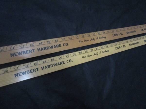 Vintage Newbert Hardware Company / 48" Wooden Rulers, 1700 J St. Sacramento, Calif.