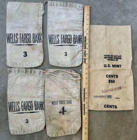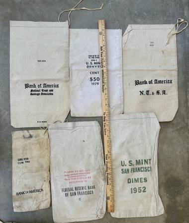 18 VINTAGE BANK CLOTH MONEY BAGS B of A WELLS FARGO US MINT FED RESERVE. $40