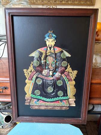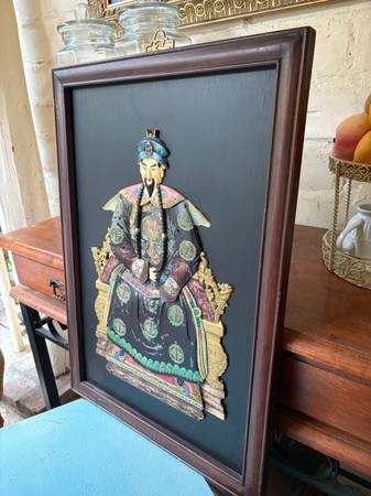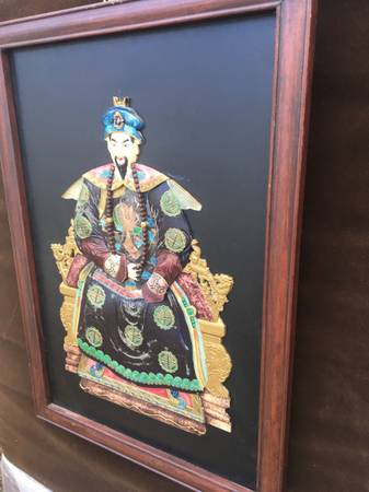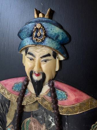 Vintage Wall Art Chinese Qing Dynasty-Style Soapstone Emperor Royalty 17x24
