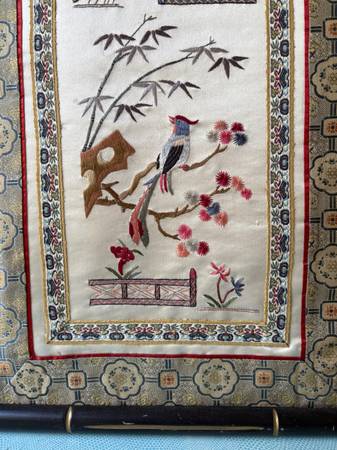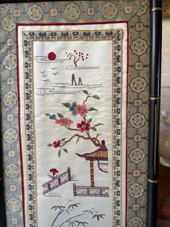 Photos 10-12: Framed Antique Chinese silk panel, $180
