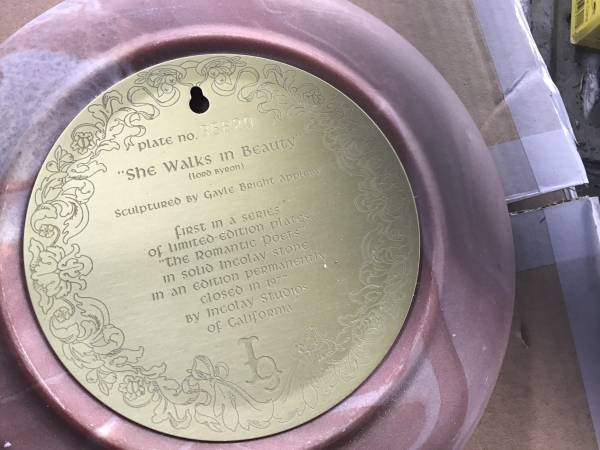 Lord Byron’s ( she walks in beauty) collector plate from 1976 Only $40 A full relief image on sculptured stone ,very beautiful , send me a phone number